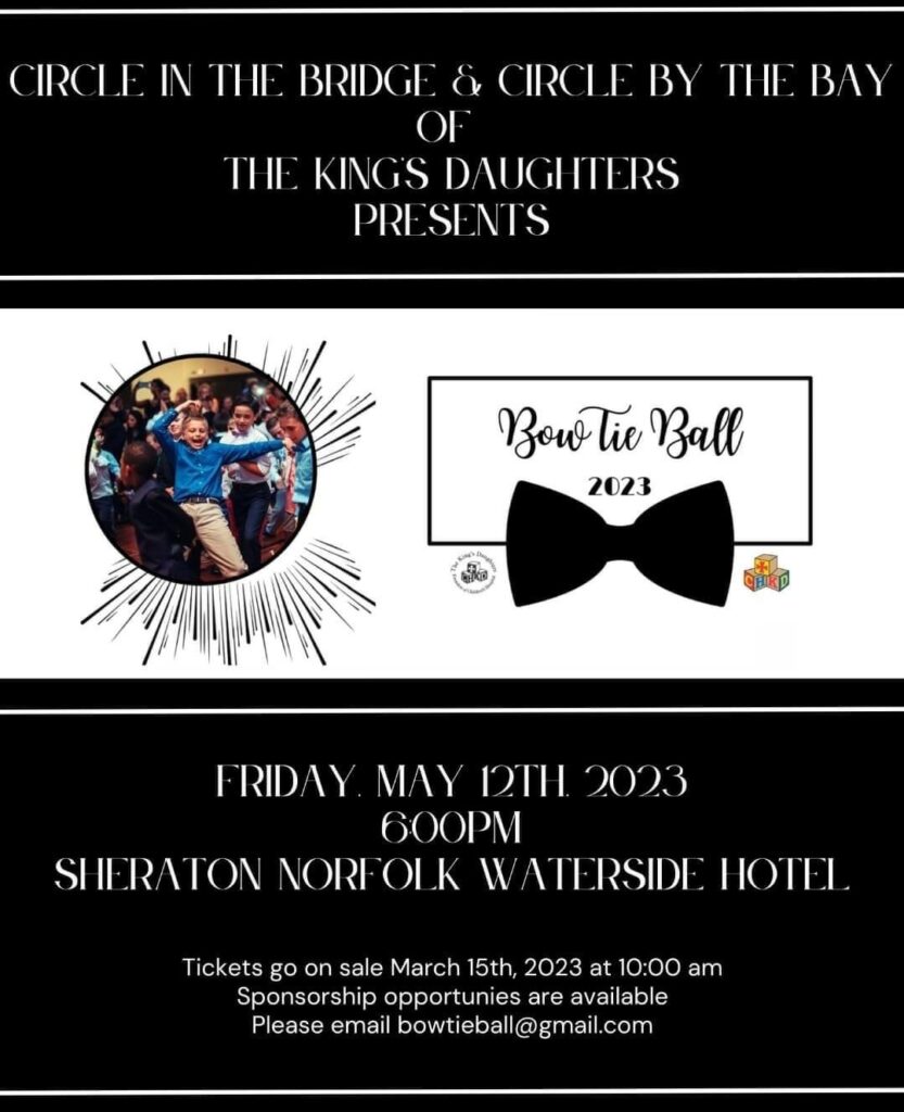 Description: Don’t miss the 2023 Bow Tie Ball, Mother and Son dance to benefit Children’s Hospital of The King’s Daughters. This exciting event will offer dancing, DJ, food and raffle items.