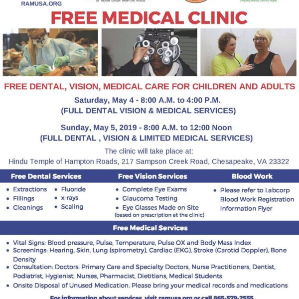 Reminder – Free Medical Clinic (Chesapeake)May 3, 2019 -
