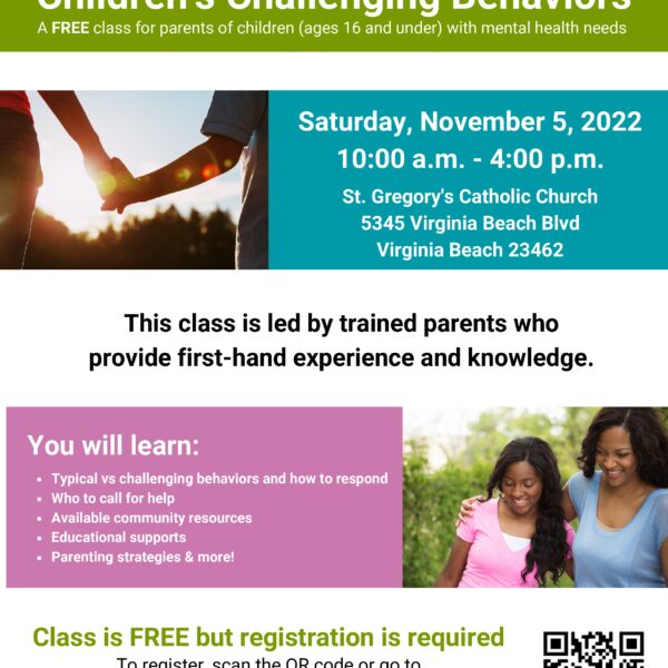 Children’s Challenging Behaviors is a workshop for parents of children and youth with mental health needs.