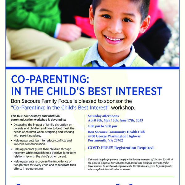 Upcoming Workshop: Co-Parenting. This workshop helps parents comply with the requirements of Section 20-103 of the Code of Virginia. Participants must attend only one of the sessions to meet court requirements.