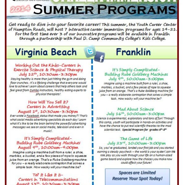 Career Workshops (Ages 14-21)July 24, 2014 -
