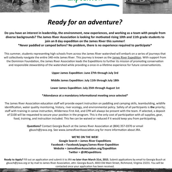 James River Expedition Now Accepting Applications!March 26, 2015 -