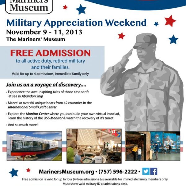 This weekend all Active Duty and Retired Military can enjoy FREE admission to the Mariners’ Museum as a part of their Military Appreciation Weekend. Click HERE or more information Looking for local family…